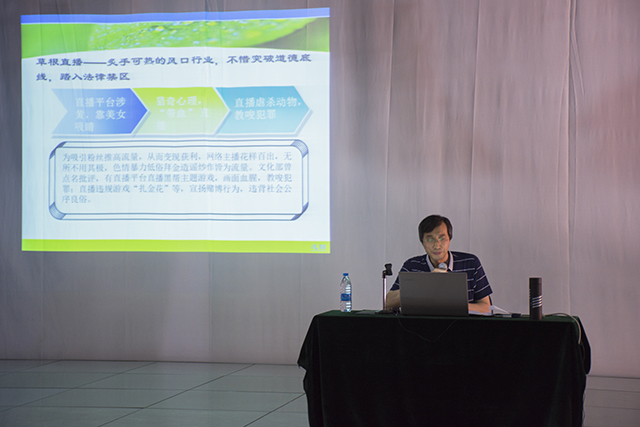 报告会上,杨晓峰教授就“新时代的媒体创新”、“新媒体与社会责任”、“新媒体与社会变革”、“新媒体时代新闻教育与实践”、“大数据与新媒体”、“大数据传播与网络舆情”等议题作了深入解读,全面、系统、客观、多角度展现了我国新媒体发展现状,指出:新媒体是所有人对所有人的传播,新媒体的社会责任在于宣传和弘扬中华优秀传统文化,坚定文化自信,建设社会主义文化强国。为此,广大师生应强化思想认识,提高政治站位,增强使命感和责任感,加强学习、研讨和交流,切实当好新媒体产业发展的生力军和引领者,努力为新媒体建设和发展做出更大贡献。