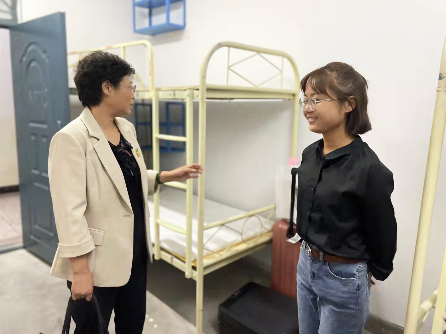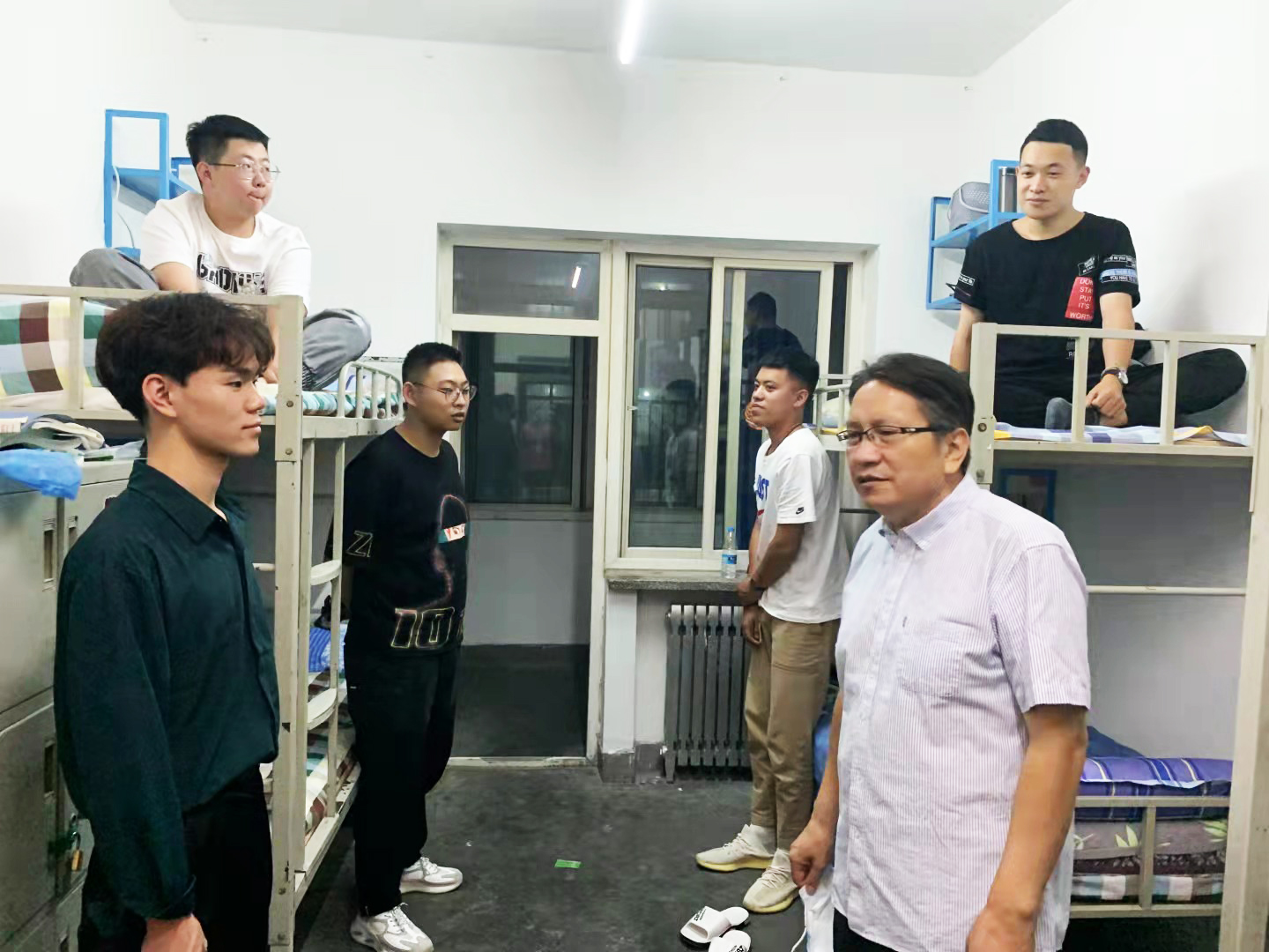 9月10日晚,伟德国际victor1946领导、班主任、辅导员一行深入员工宿舍看望2021级新生。